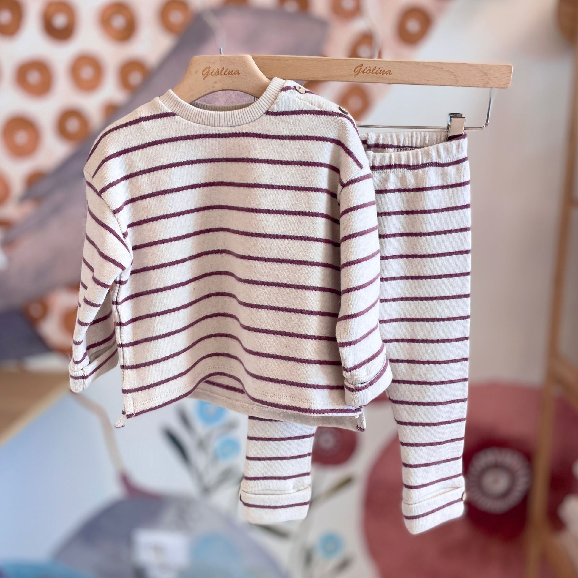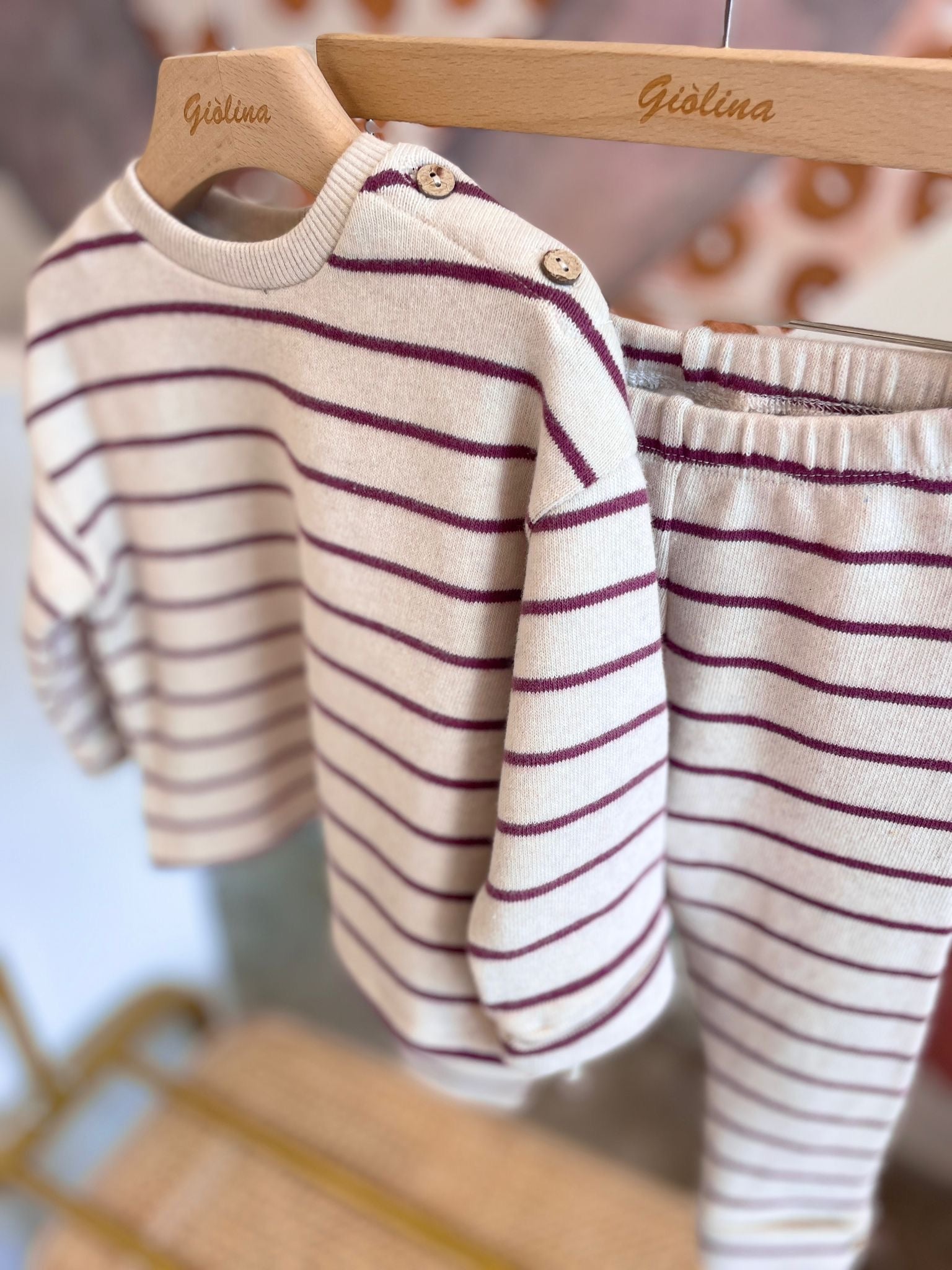 Completo felpina e pantalone riga melanzana. Diaponibile dalla 18 mesi alla 36 mesi . Da €78