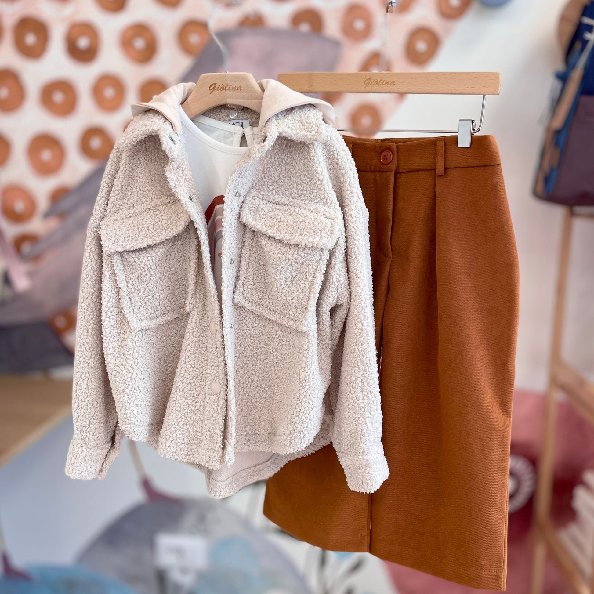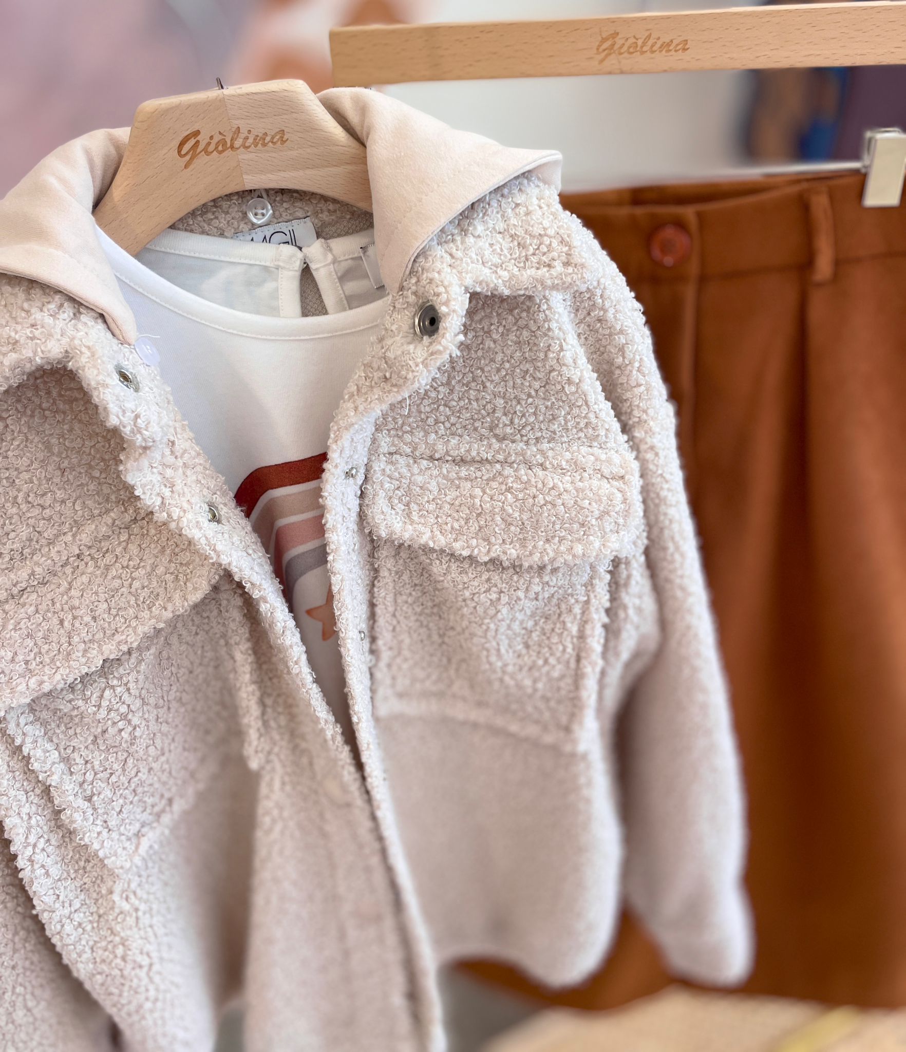 Giacca a camicia teddy con cappuccio staccabile disponibile dalla 4 anni alla 18 anni . Da € 110 a € 140