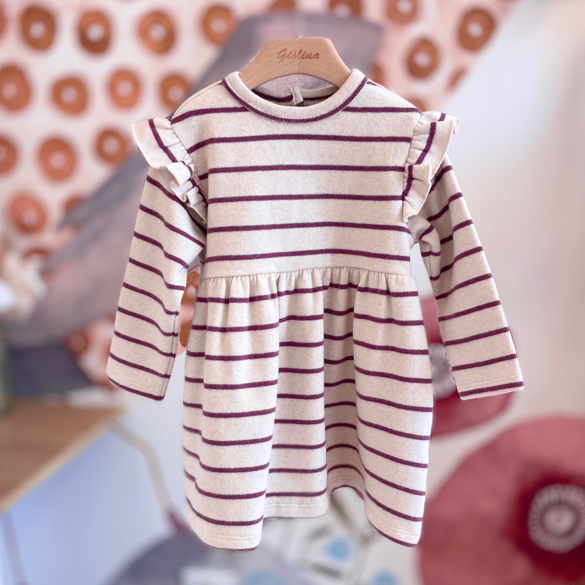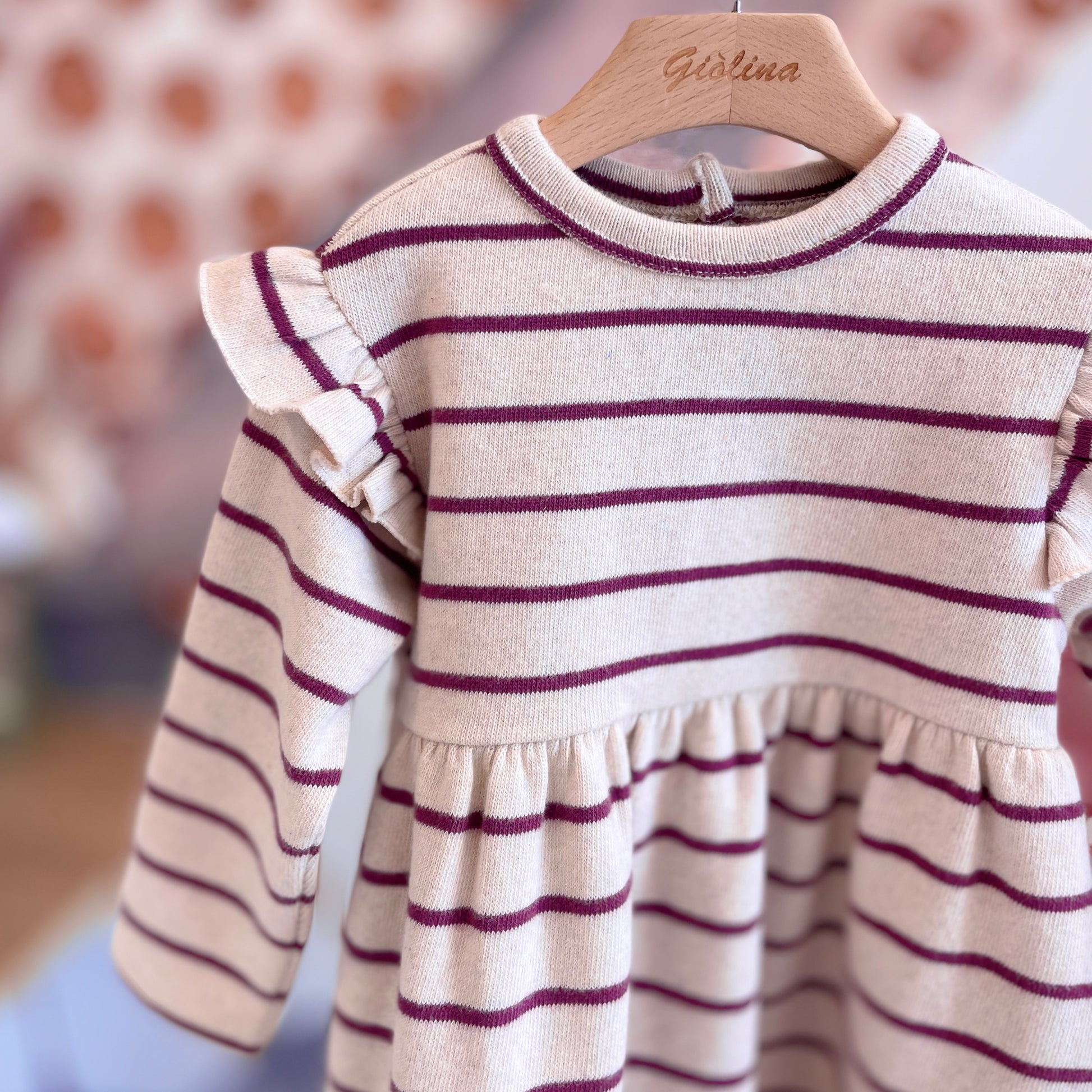 Abito in felpa rigata melanzana disponibile dalla 3 mesi alla 36 mesi . € 54