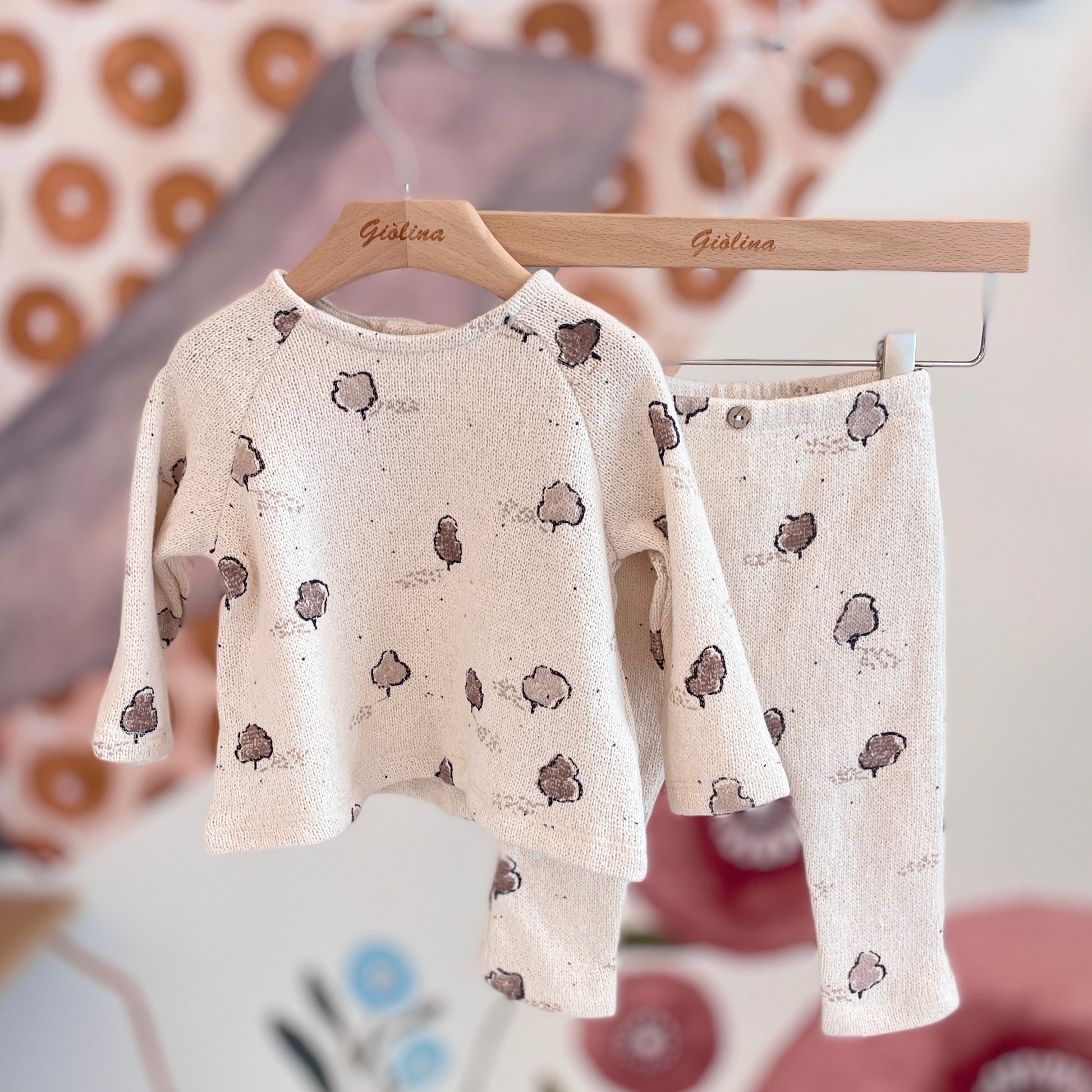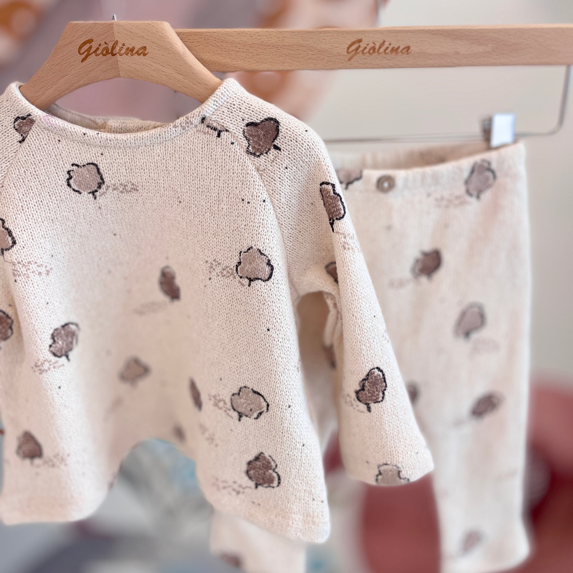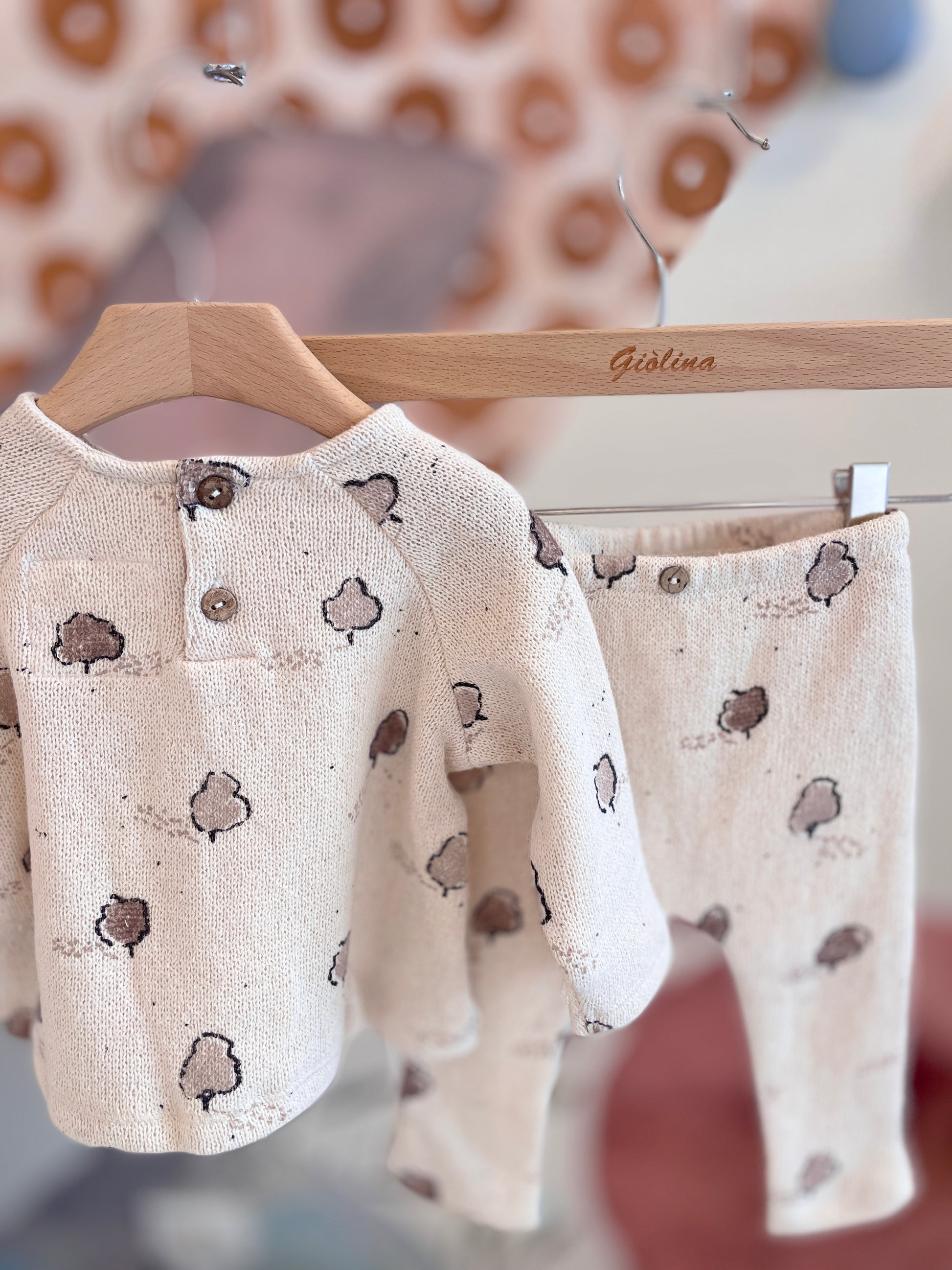 Completino in caldo cotone panna con piccoli alberi neri e marroni . Disponibile dalla 0Mesi alla 12 Mesi . €74