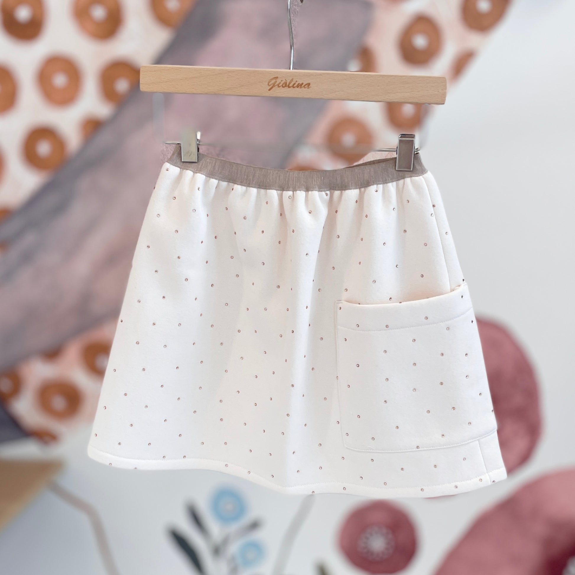 Gonna in felpa panna con dettagli Swarovski disponibile dalla 4 anni alla 14 anni . Da €70 a € 80