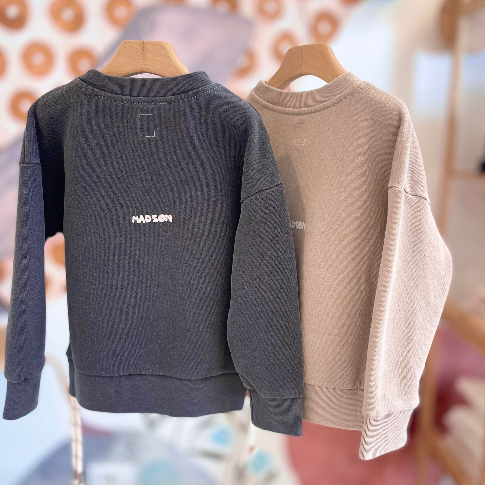 Felpe girocollo felpate girocollo sabbia e antracite con coulisse logata retro disponibile dalla 4 anni alla 12 anni . € 88