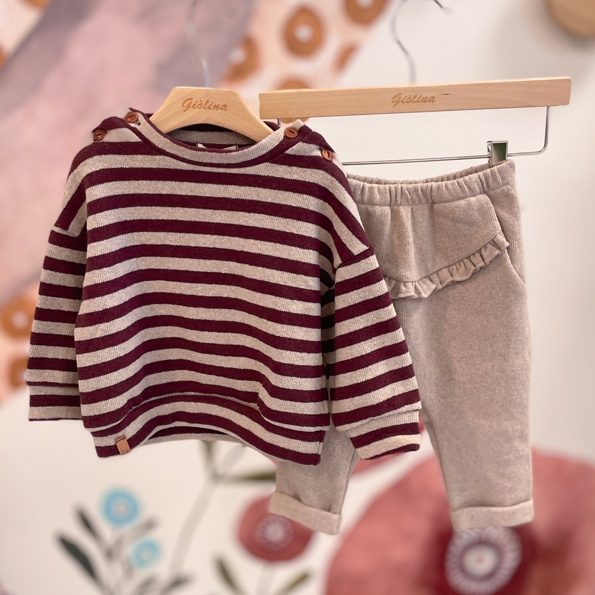 Felpina girocollo rigata bordeaux e beige con fascia in fondo disponbile dalla 9 mesi alla 4 anni . €50