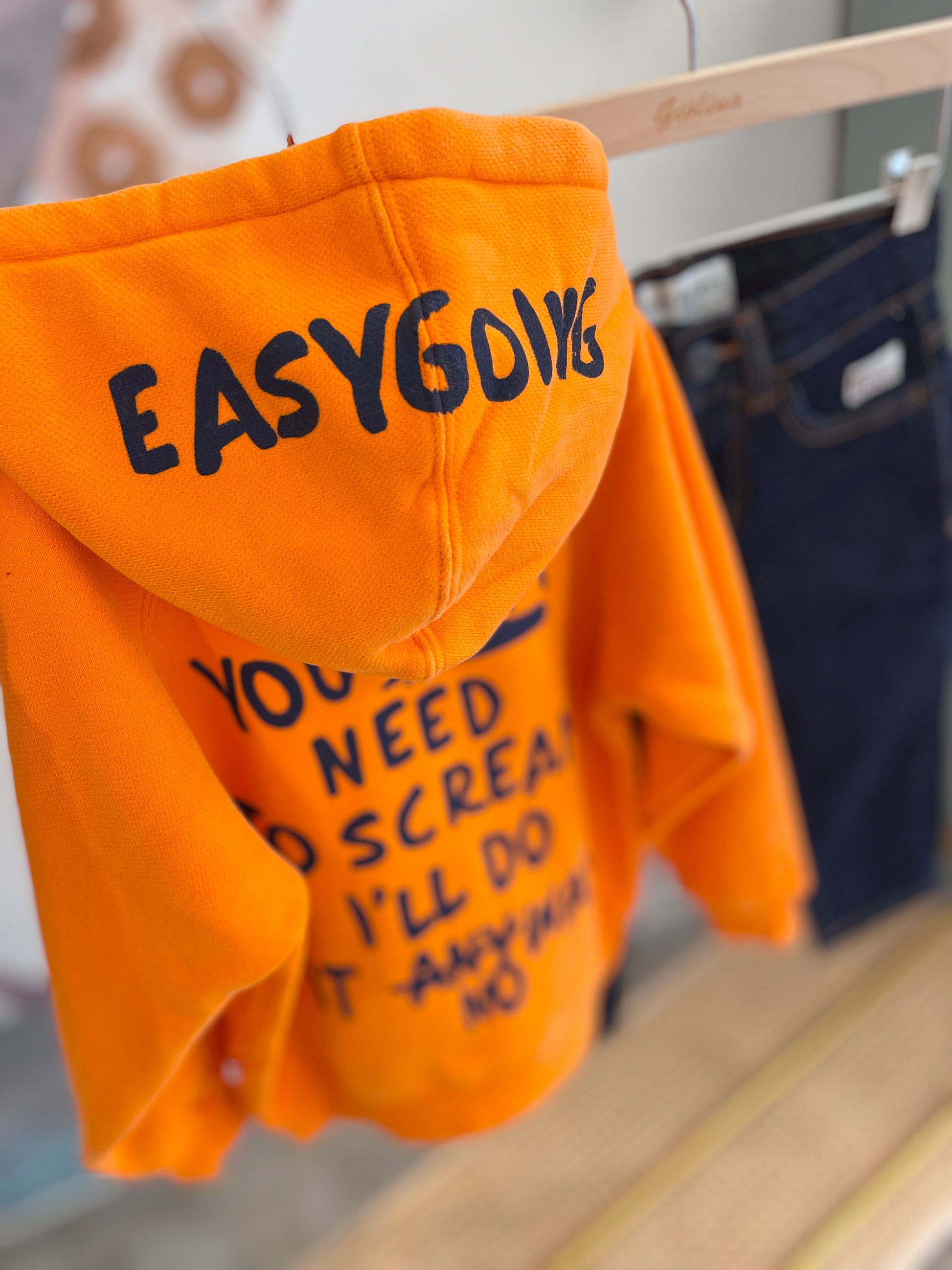 Felpa con cappuccio arancio e scritte a contrasto disponibile dalla 4 anni alla 12 anni. € 99