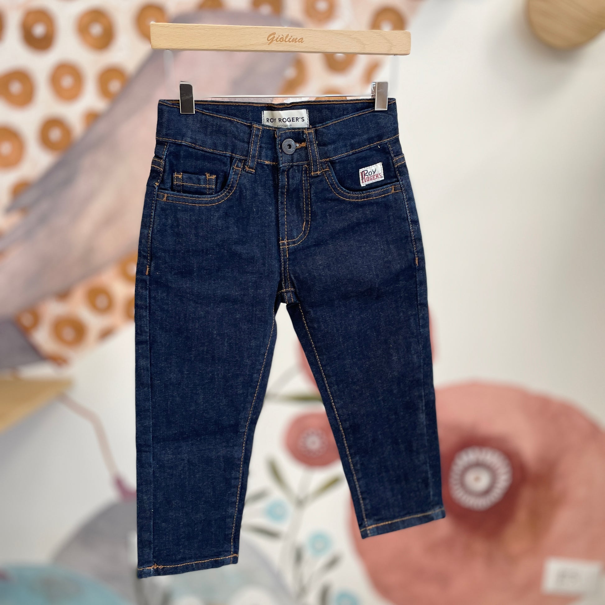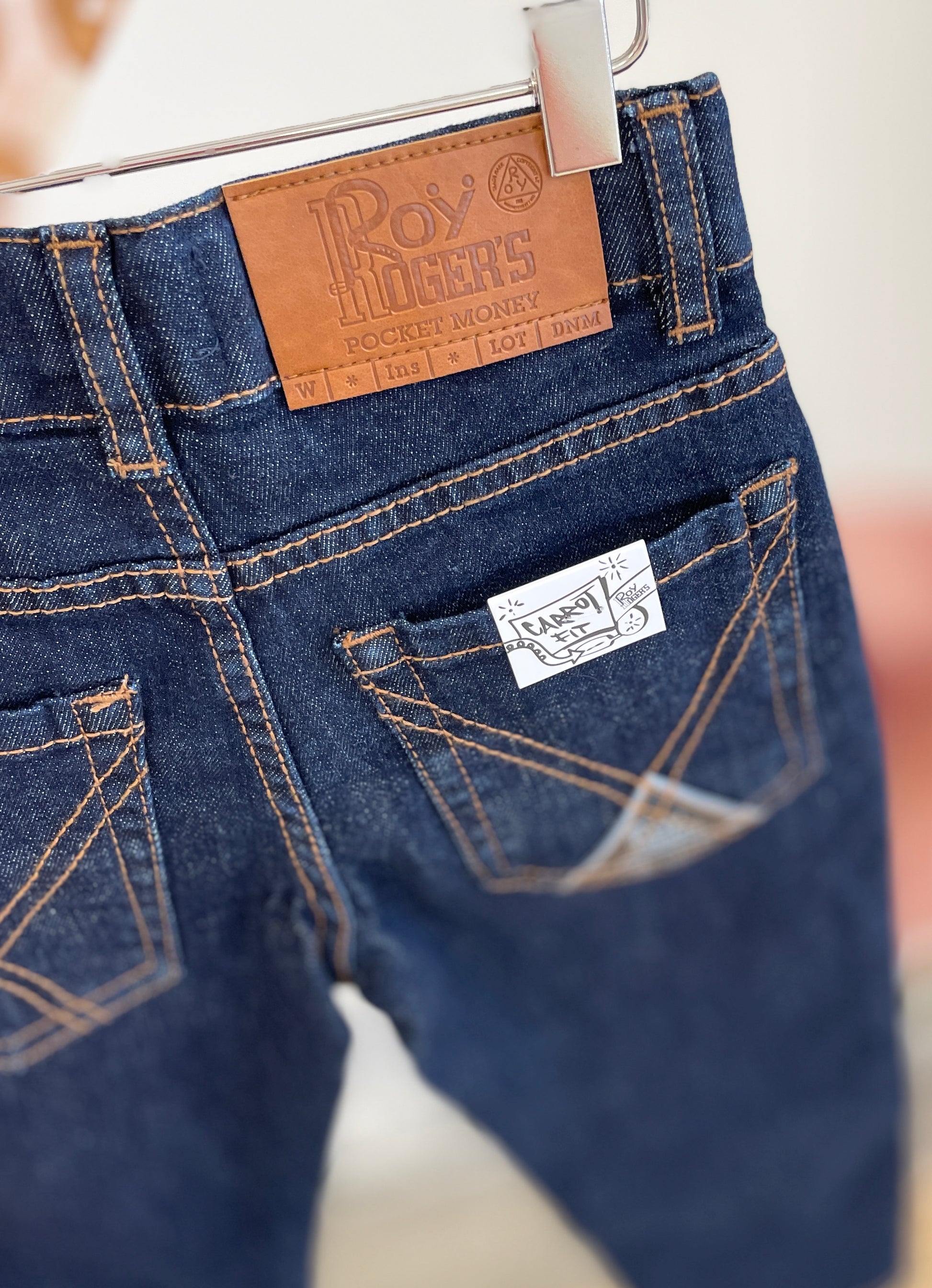 Denim carro fit blu scuro con cuciture a contrasto disponibile dalla 4 anni alla 12 anni . € 74