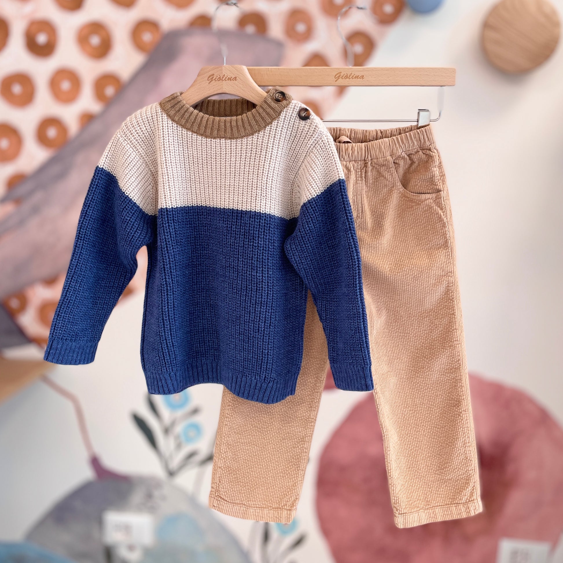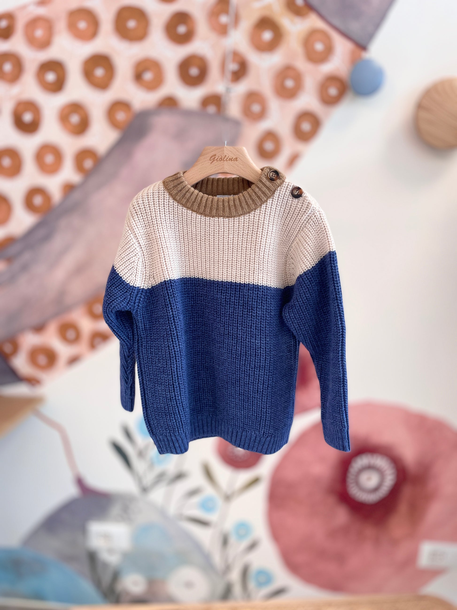 Golf in lana biscotto/beige/blu avio. Disponibile dalla 2 anni alla 10 anni €64/69