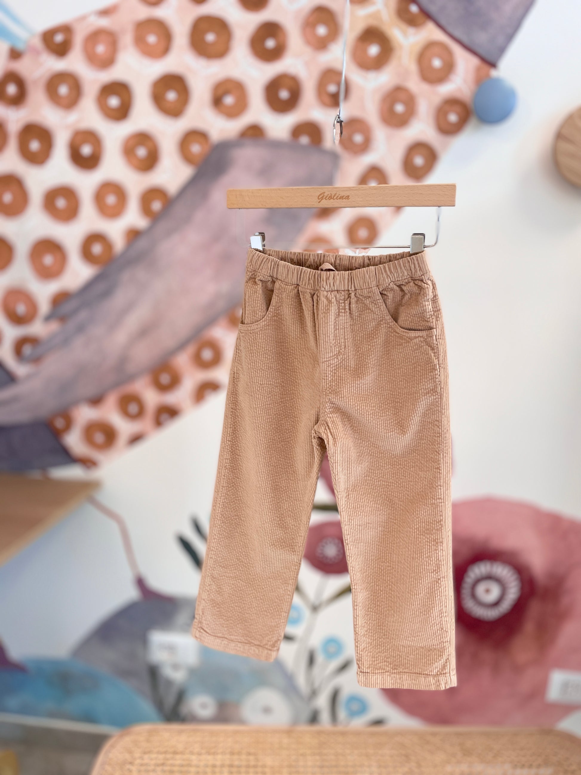 Pantalone in velluto a coste biscotto con elastico in vita . Disponibile dalla 2 anni alla 10 anni €57/61