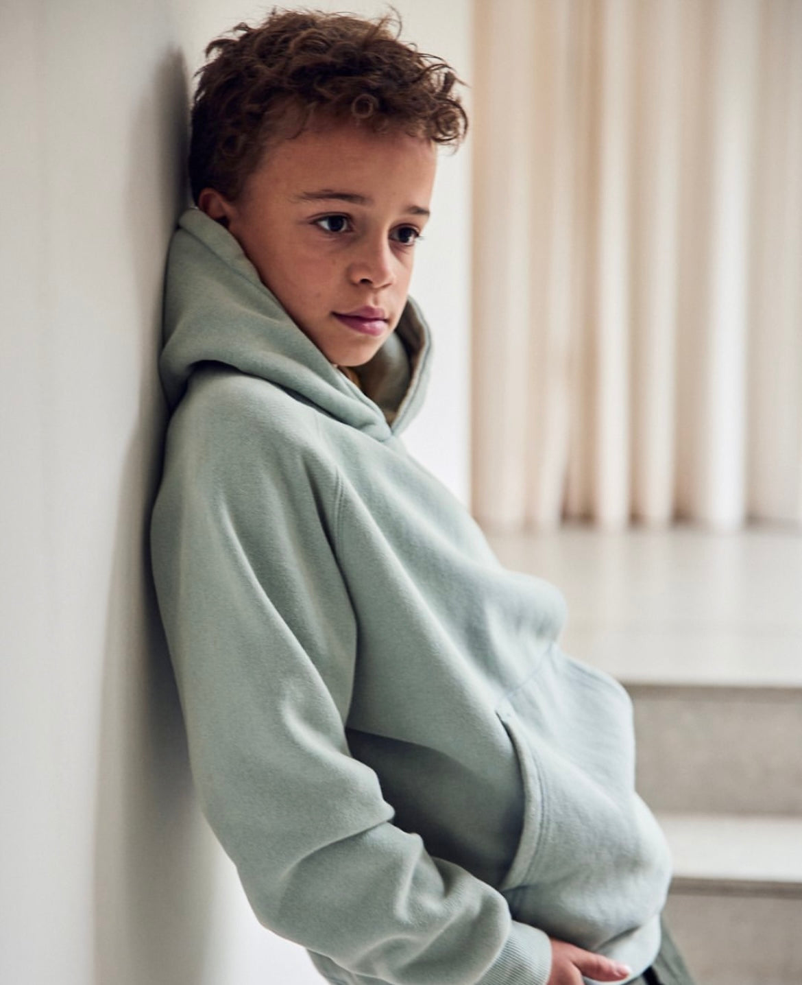 Felpa con zip e capouccio e tasca a marsupio salvia chiaro disponibile dalla 4 anni alla 12 anni € 84