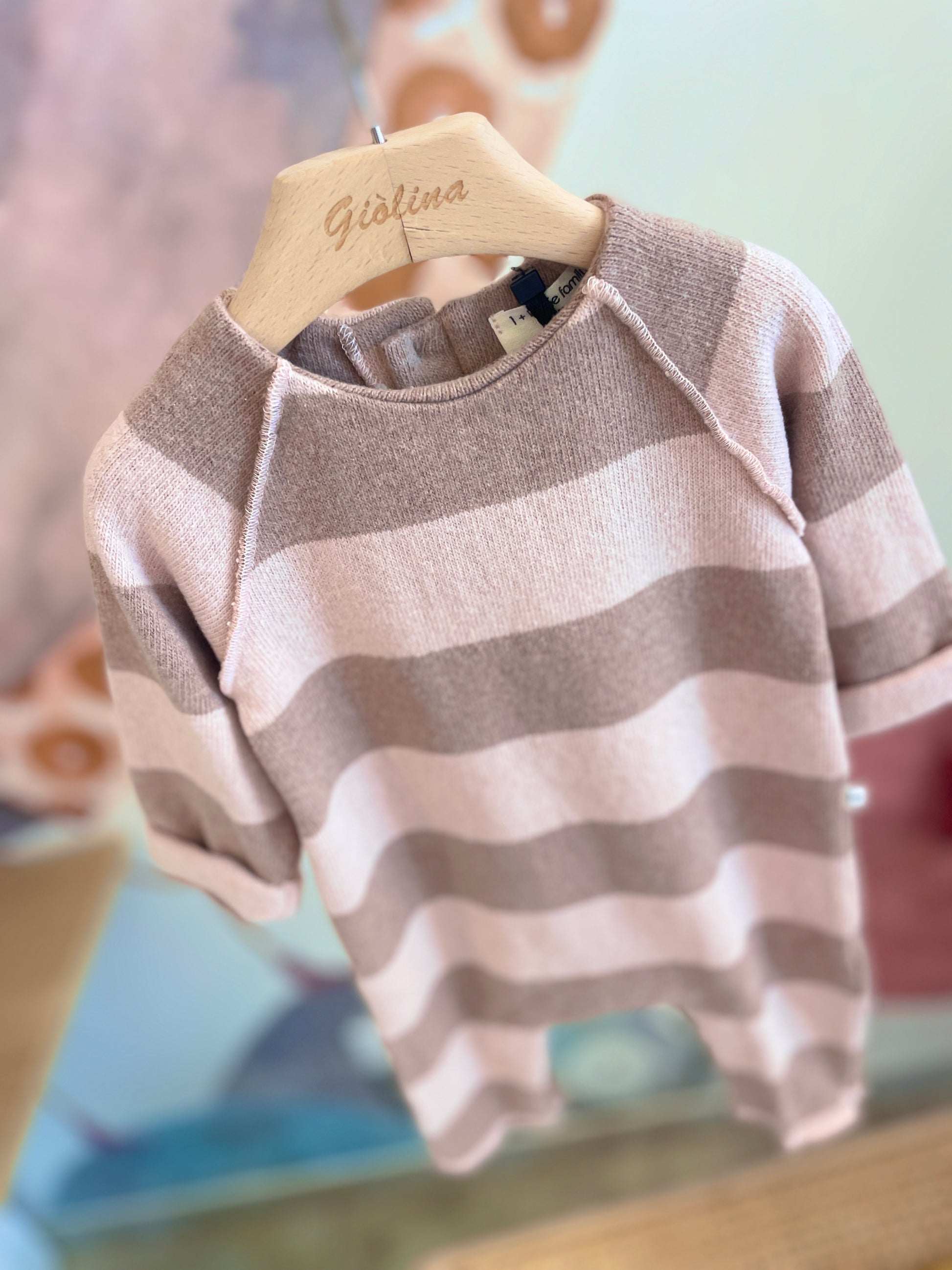 Tutine di cotone caldo rigate rosa e bordeaux disponibile dalla 3 mesi alla 9 mesi . € 60